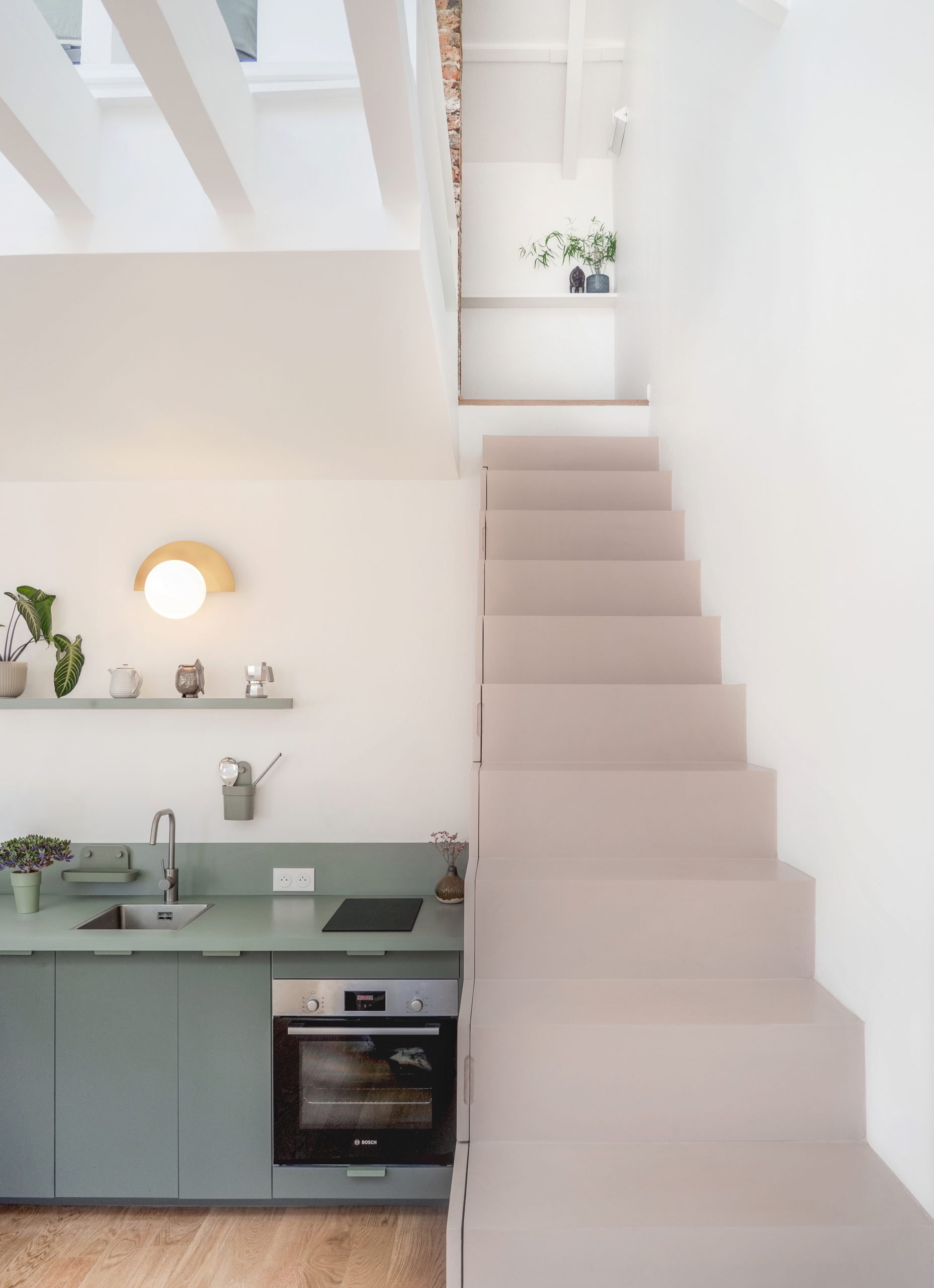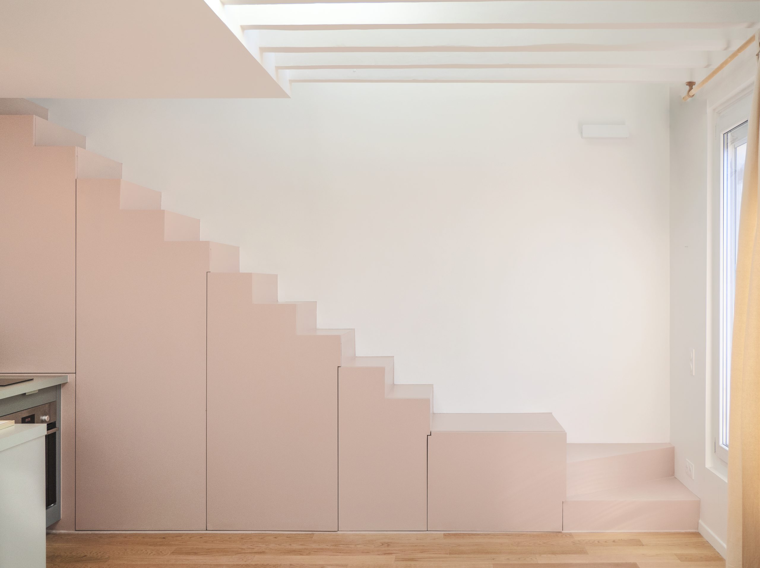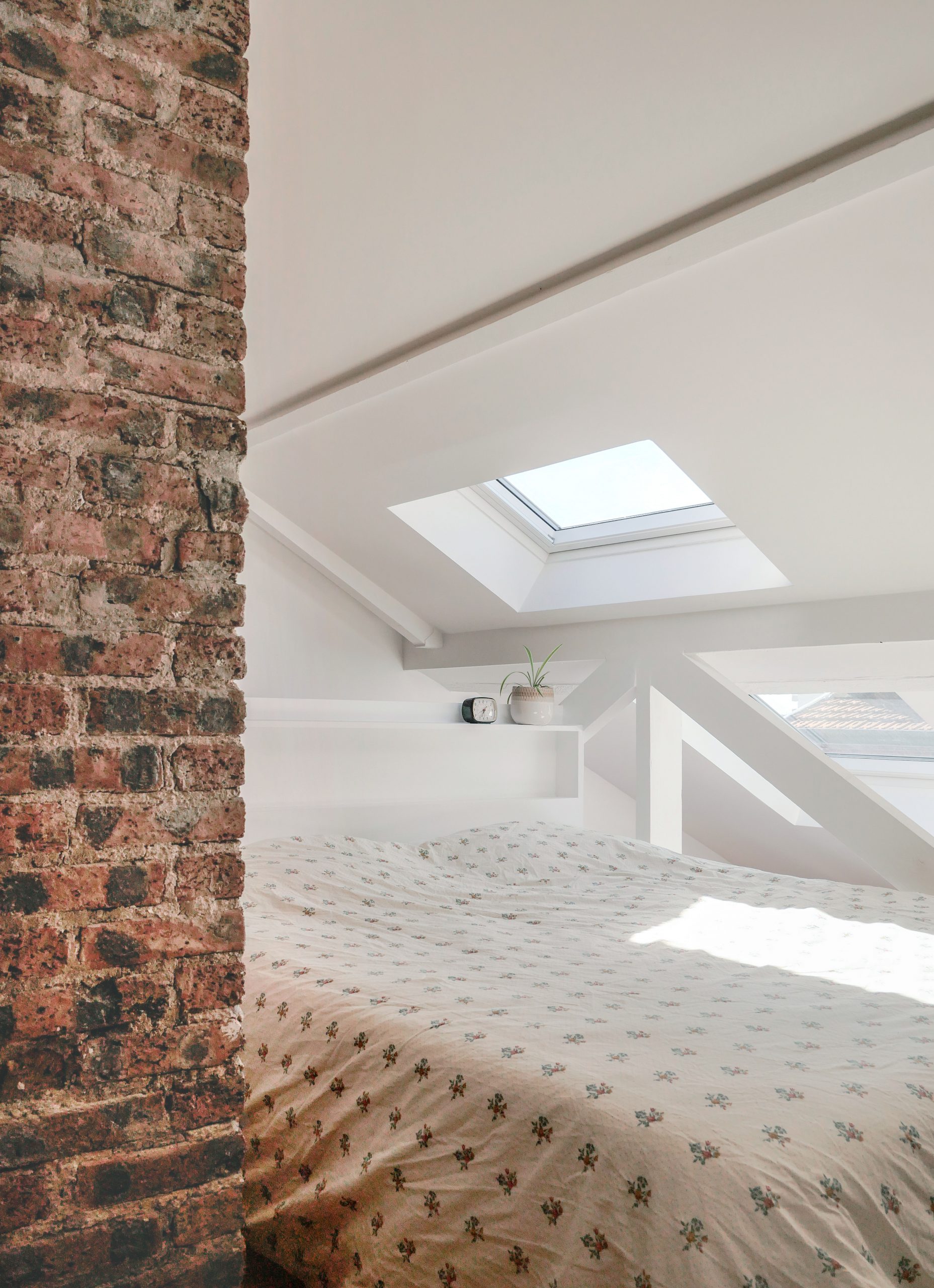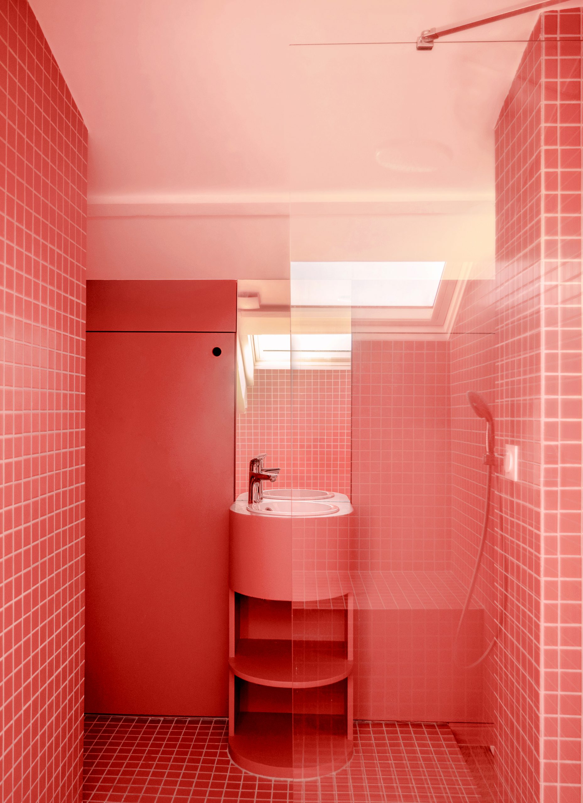 Situé aux Lilas, en face du parc Lucie Aubrac, le projet consiste en la création d'un duplex par la réunion de combles et d'un studio de 25m2. La restructuration de cet appartement a permis de gagner 15m2 de surface habitable en aménageant à l'étage une chambre en mezzanine ainsi qu'une salle de bain. Afin de tirer parti de l'exposition sud, le toit a été percé par quatre fenêtres. La lumière naturelle inonde l'ensemble et anime le projet grâce à des jeux d'ombres, de reflets et de transparence.