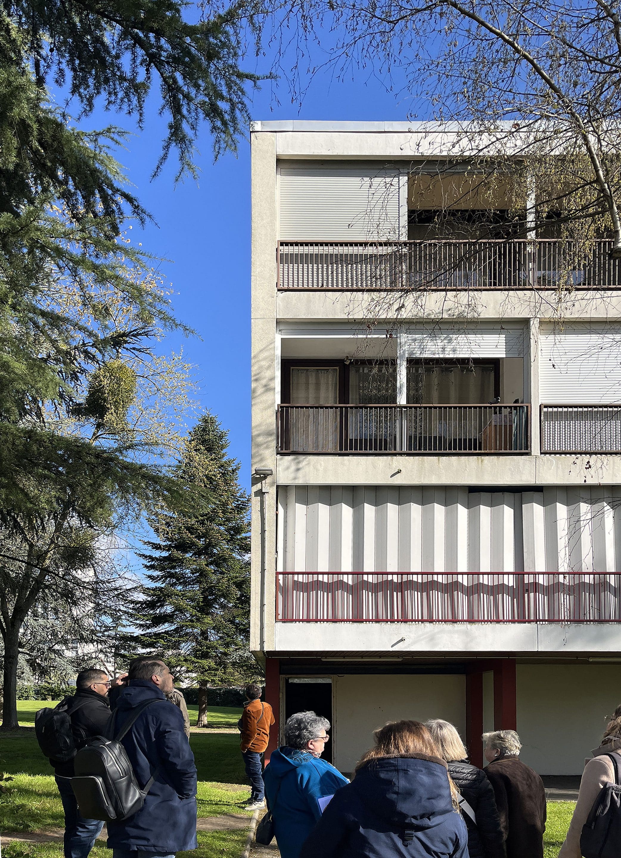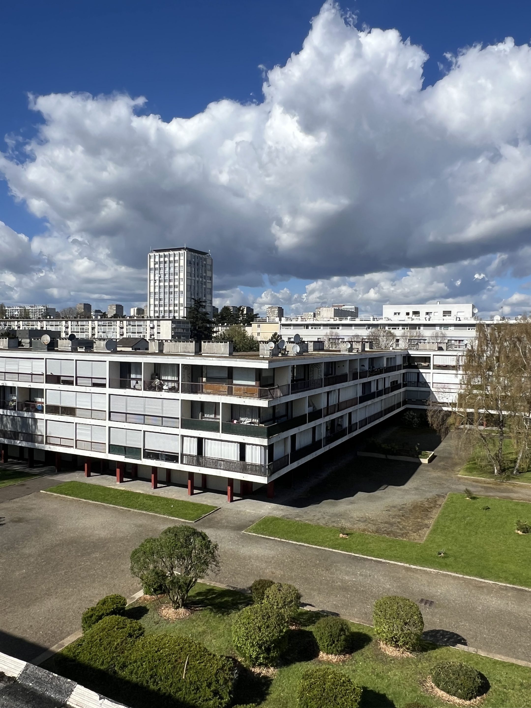Ce grand ensemble est constitué de plusieurs bâtiments conçus par l’architecte Jean Dubuisson. Nous avons été consultés afin de rénover deux bâtiments totalisant 136 lots d’habitation. Ces immeubles façonnent le paysage et reflètent l’âge d’or des années 70 : typologie traversante, menuiseries bois toute hauteur et loggias généreuses ; un rez-de-chaussée poreux, laissant place aux usages commun. Nous intervenons afin de rénover et préserver cette architecture, mais aussi pour ancrer ces bâtiments dans les problématiques liées à notre temps : performance énergétique, impact environnemental et durabilité. Un projet à la croisée de l’héritage et du renouvelement, conciliant mémoire architecturale et exigences contemporaines.